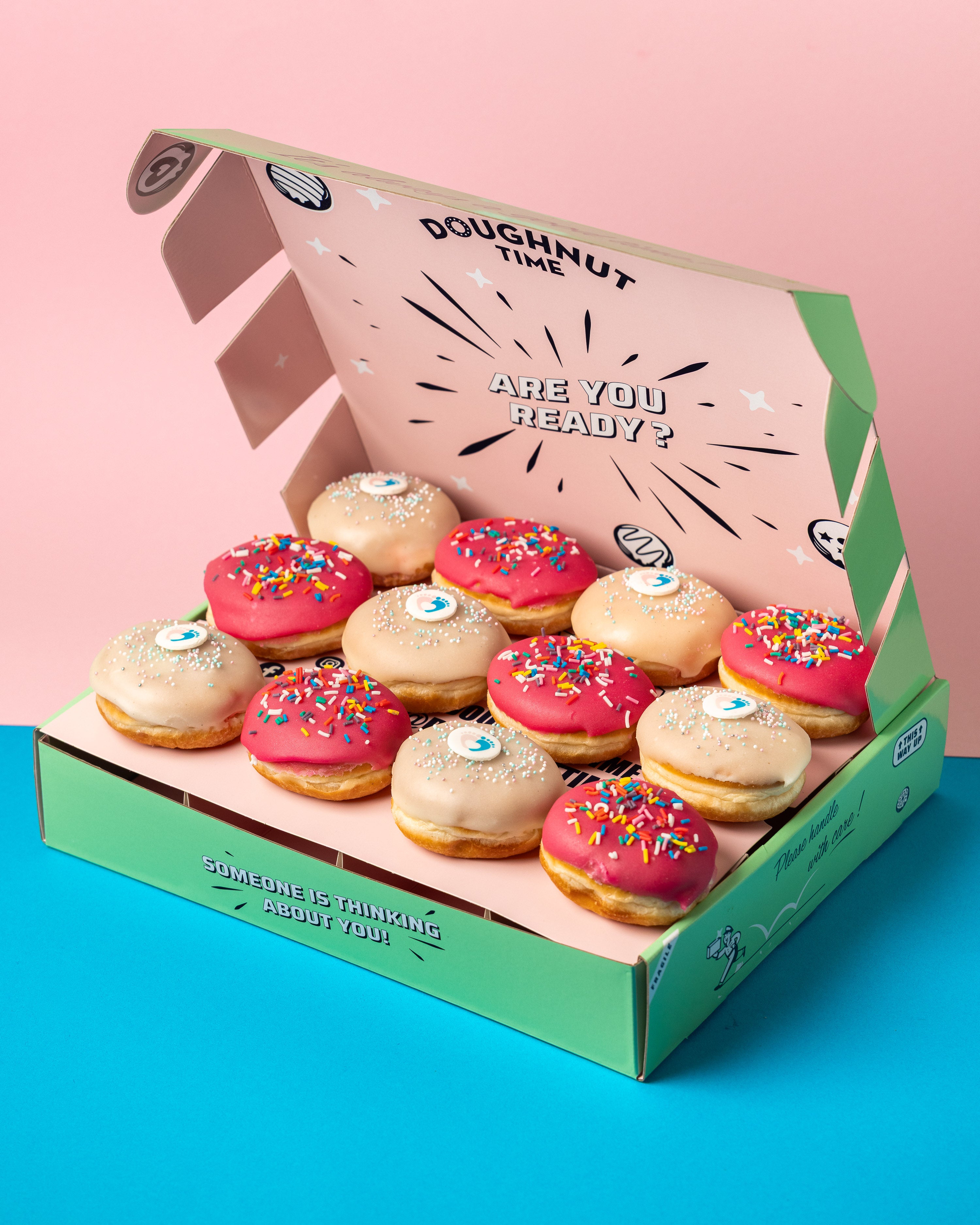 Immediately after the production, our doughnuts are sent with DHL express delivery. Our specially developed gift boxes keep them safe and fresh!